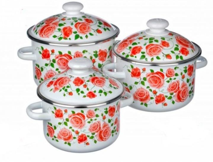ЭМАЛИРОВАННАЯ ПОСУДА ПРОИЗВОДСТВА "СИБИРСКИЕ ТОВАРЫ" С НАШЕЙ ДЕКОЛЬЮ И ФУРНИТУРОЙ